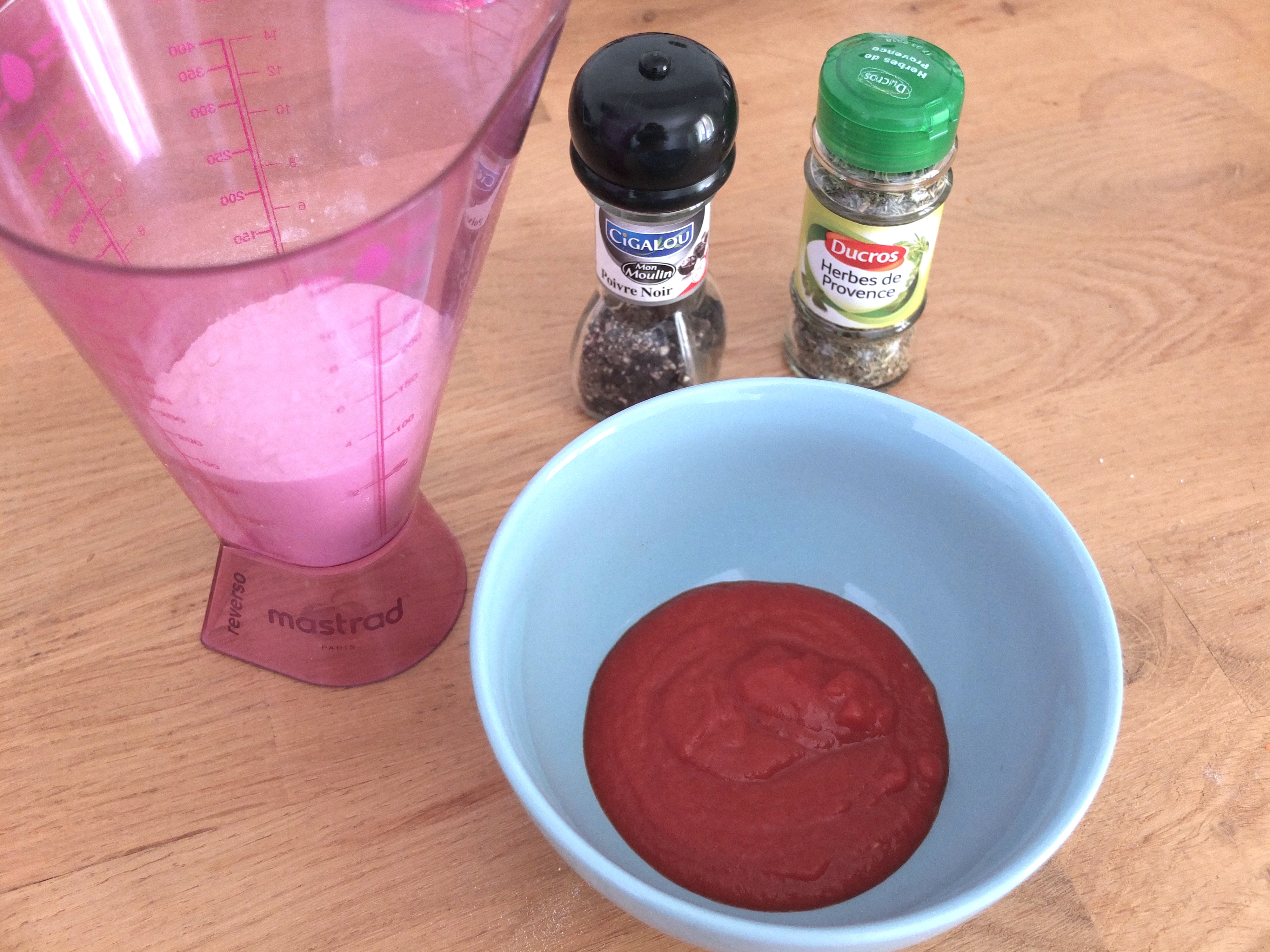 - J’y ajoute quelques tranches de tomates, de la salade, du poivre et de la sauce tomate !